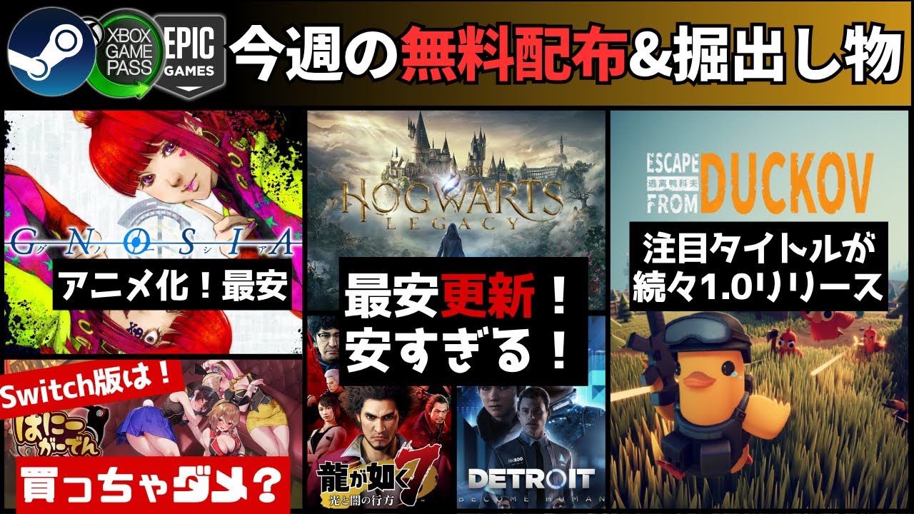 【PCゲーム週イチまとめ(10/18更新)】無料配布まとめ/安すぎやろがい特集『ホグワーツ・レガシー』1316円『龍が如く7』792円など/『へべれけ ばにーがーでん』はswitchよりSteam版
